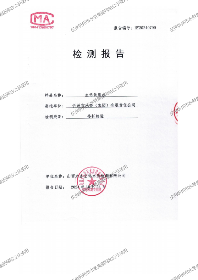 忻州城區(qū)公共供水水源水、出廠水、管網(wǎng)水、管網(wǎng)末梢水2024年10月份水質(zhì)信息公示