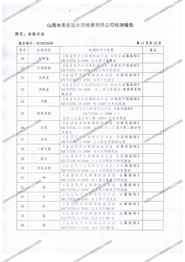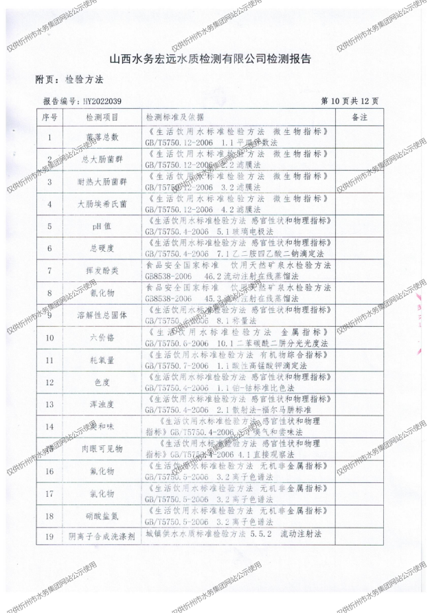 忻州城區(qū)公共供水水源水、出廠水、管網(wǎng)水、管網(wǎng)末梢水2022年5月份水質(zhì)信息公示